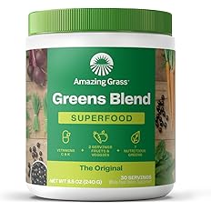 Amazing Grass Greens Blend Superfood: Super Greens Powder Smoothie Mix for Boost Energy, with Organic Spirulina, Chlorella, Beet Root Powder, Digestive Enzymes & Probiotics, Original, 30 Servings.