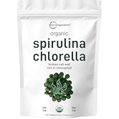 Organic Chlorella Spirulina Tablets, 3000mg Per Serving, 720 Counts, 4 Months Supply, 50/50 Blend Superfood, No Filler, No Additives, Cracked Cell Wall, Rich in Vegan Protein & Chlorophyll.