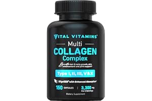 Vital Vitamins Multi Collagen Complex – Type I, II, III, V, X, Grass Fed, Non-GMO, 150 Capsules
