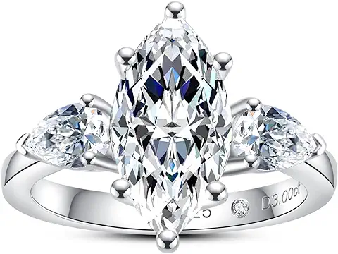 AnuClub Round/Emerald/Marquise Cut Moissanite 3 Stones Engagement Rings D Color VVS1 Round Cut 925 Sterling Silver Anniversary Wedding Promise Rings for Women