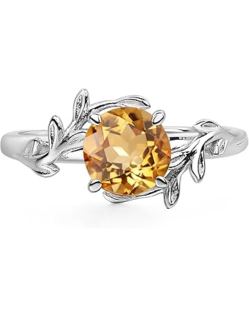 LUO 925 Sterling Silver Rings 7MM Round Shaped Gemstone Engagement Rings with Leaf Design Promise Rings for Her Birthday Christmas Valentine's Day Jewelry Size 3-13