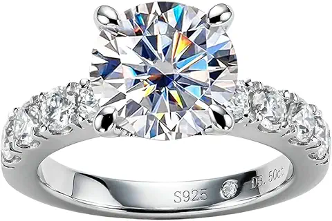 AnuClub Moissanite Engagement Ring, Total 4.3cttw D Color Round/Oval/Asscher Cut, 925 Sterling Silver Promise Anniversary Rings for Women, Elegant Gift Packed