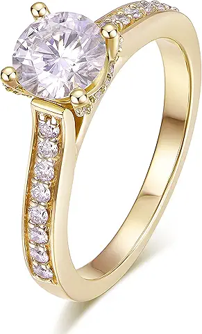 Aurora & Fiori 1/2/3/4 CT Round Moissanite Engagement Ring for Women, D Color VVS1 Solitaire Moissanite Ring S925 Sterling Silver with 18K Yellow/White Gold Plated