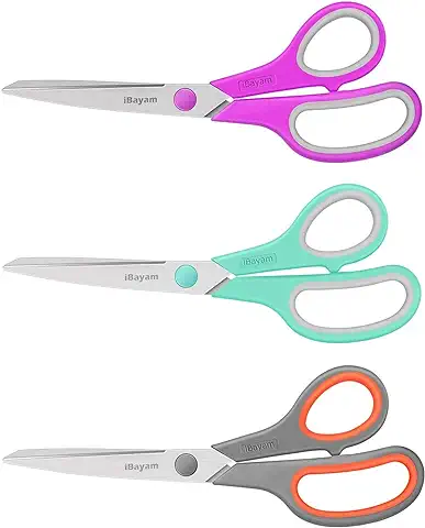 Scissors, iBayam 8″ All Purpose Scissors Bulk 3-Pack, Ultra Sharp 2.5mm Thick Blade Shears Comfort-Grip for Office Desk Accessories Sewing Fabric Home Craft Teacher School Supplies, Right/Left Handed