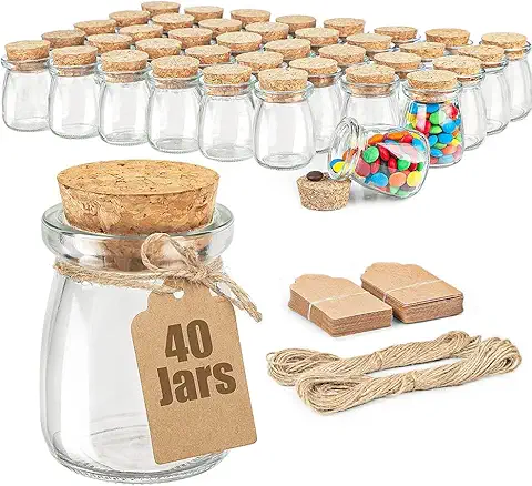 40 Pack Glass Favor Jars with Cork Lid, 3.4 oz Small Glass Bottles for Wedding Favor, Baby Shower, Party Favor, Gift Jars for Candy, Bonus Twine and Labels