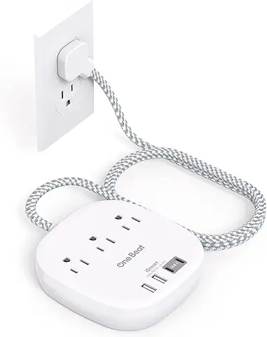 One Beat Flat Plug Power Strip, 5ft Flat Extension Cord, 3 Outlets 4 USB Ports (2 USB C) 22.5W/4.5A Desktop Charging Station Cruise Ship Power Strip No Surge Protection, Dorm Room Travel Essentials