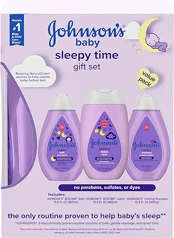 Johnson’s Baby Sleepy Time Bedtime Gift Set with Relaxing NaturalCalm Aromas, Bedtime Baby Bath Shampoo, Wash & Lotion, Baby Bedtime Essentials, Hypoallergenic & Paraben-Free