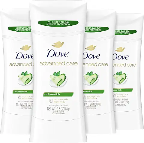 Dove Advanced Care Antiperspirant Deodorant Stick Cool Essentials 4 ct for helping your skin barrier repair after shaving 72 hour odor control and sweat protection with Pro Ceramide Technology 2.6 oz
