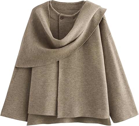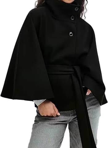 OPCAKM Women’s Batwing Sleeve Poncho Coat Oversized Winter Pea Coat Stand Collar Cropped Cape Jacket with Belt