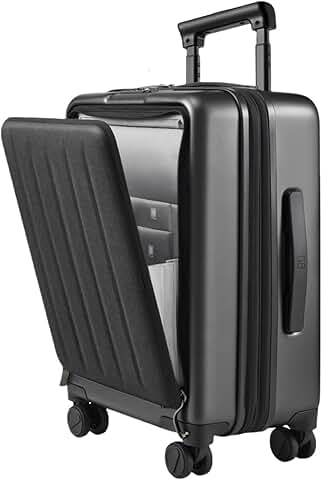 NINETYGO Coffee Journey Luggage Airline Approved, Carry On with Front Compartment, Flat Top Opening Checked Luggage, Expandable, Double Spinner Wheels TSA Lock
