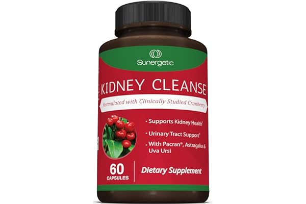 Sunergetic Premium Kidney Cleanse Supplement – Powerful Kidney Support Formula with Cranberry Extract Helps Support Healthy Kidneys & Urinary Tract Support – 60 Vegetarian Capsules