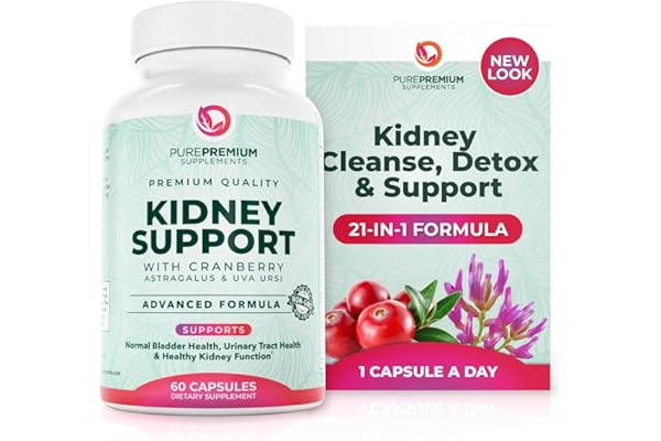PurePremium Kidney Support Supplement – Kidney Cleanse Detox & Repair with Cranberry Extract & Astragalus – 21-in-1 Complex Supports Normal Bladder, Urinary Tract & Kidneys Health – 60 Day Supply