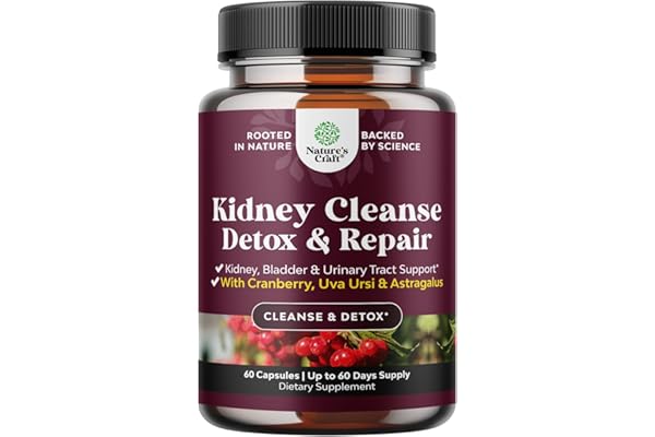 Advanced Kidney Support Supplement – Kidney Cleanse Detox & Repair Cranberry Extract Capsules with Uva Ursi, Stinging Nettle & Astragalus for Kidney health – Urinary Tract Health – 60 Caps