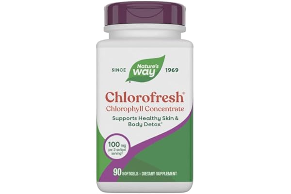Nature’s Way Chlorofresh Chlorophyll Concentrate Softgels, Chlorophyllin Copper Complex, Internal Deodorant Supplement, Supports Healthy Skin and Detox Pathways*, 90 Softgels