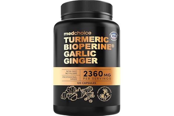 4-in-1 Turmeric and Garlic Supplements with BioPerine – 2360mg Turmeric Ginger Root Capsules with Garlic – High Potency Herbal Blend (120 ct)