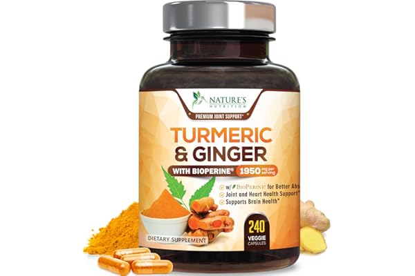 Turmeric Curcumin Supplement 1950mg – 95% Curcuminoids with Organic Turmeric & Ginger, BioPerine Black Pepper for Best Absorption, Nature’s Vegan Joint Support, Non-GMO, Bottled in USA – 240 Capsules