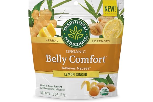 Traditional Medicinals Organic, Belly Comfort Lozenges, Lemon Ginger – Supports Nausea Relief and Occasional Indigestion – Kosher, Non-GMO, Stimulant-Free – 30 Individually Wrapped Lozenges