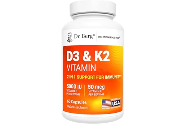 Dr. Berg Maximum Strength 7-in-1 Vitamin D3 K2 5000 IU | Naturally Derived D3 | 4X Lab-Tested & Verified | High Absorption Formula | K2 D3 Vitamin Supplement – 60 Capsules