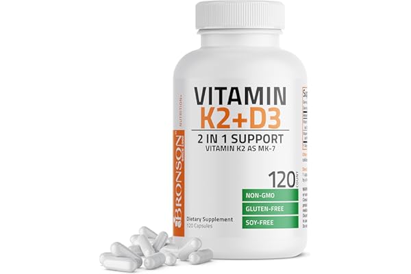 Bronson Vitamin K2 (MK7) with D3 Supplement Non-GMO Formula 5000 IU Vitamin D3 & 90 mcg K2 MK-7 Easy to Swallow D & K Complex, 120 Capsules