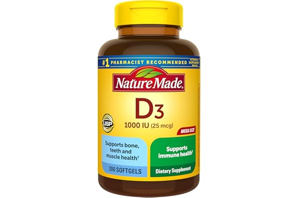Nature Made Vitamin D3 1000 IU (25 mcg), Vitamin D Supplement for Bone, Teeth, Muscle and Immune Health Support, 300 Softgels, 300 Day Supply