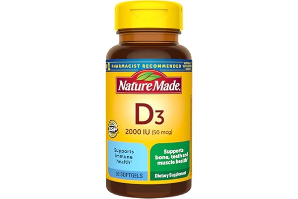 Nature Made Vitamin D3 2000 IU (50 mcg), Vitamin D Supplement for Bone, Teeth, Muscle and Immune Health Support, 90 Softgels, 90 Day Supply